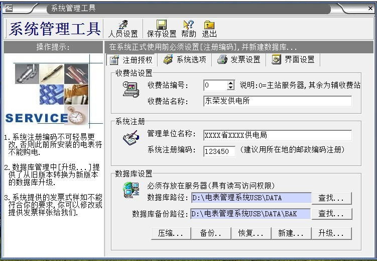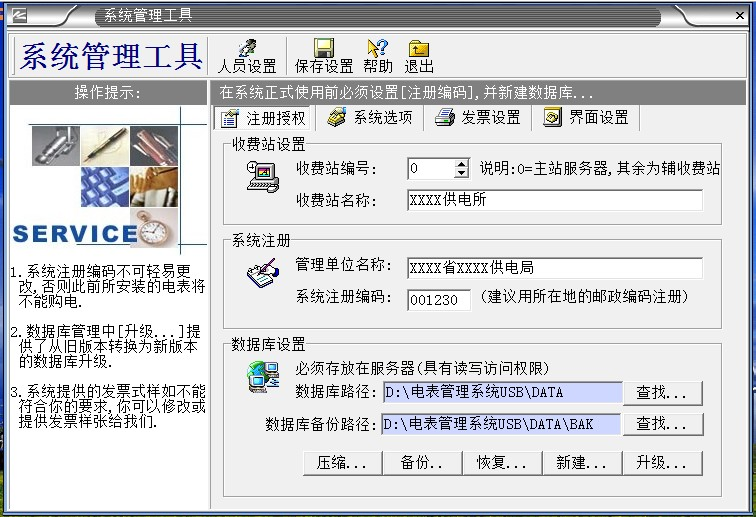 2、“系統(tǒng)數(shù)據(jù)”必須備份,如果沒有數(shù)據(jù)備份的話,系統(tǒng)第2次重裝的時(shí)候輸入原來第一次系統(tǒng)安裝設(shè)置的“系統(tǒng)注冊(cè)編碼”,導(dǎo)入備份的數(shù)據(jù)庫,才能使原來安裝的電表正常充值使用。