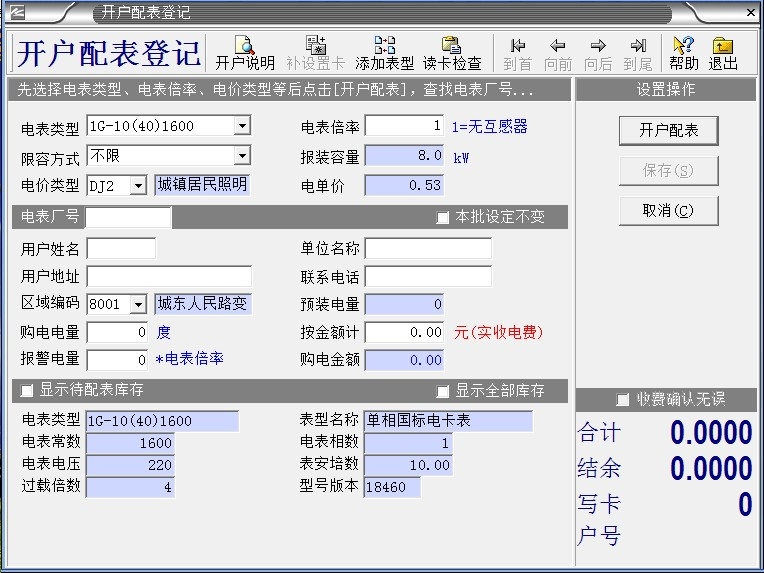 ,鼠標(biāo)左鍵:“開戶配表登記”,出現(xiàn)以下對(duì)話框: