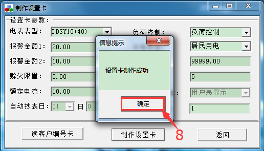 當系統(tǒng)提示“設置卡制作成功”就可以把讀卡器里面的卡拔出來了,標記上“設置卡”。(“設置卡”是通用的,三相四線1.5-6A外接互感器的電表類型除外)