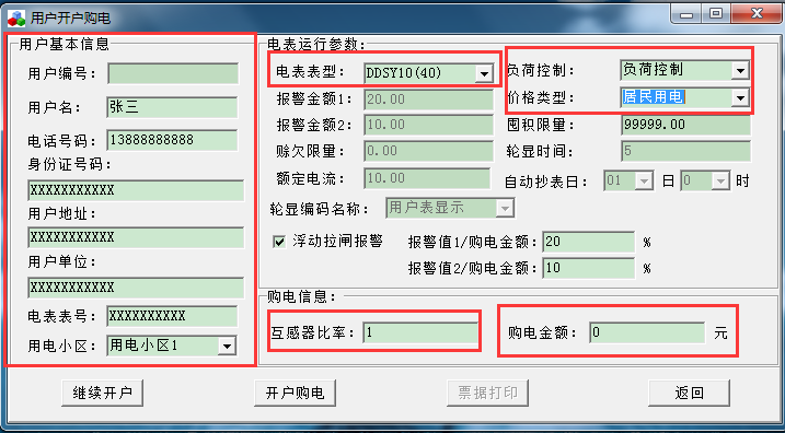 重新插張新卡到讀卡器,以上信息都根據(jù)自己要求設置好之后,單擊“開戶購電”。出現(xiàn)以下畫面。