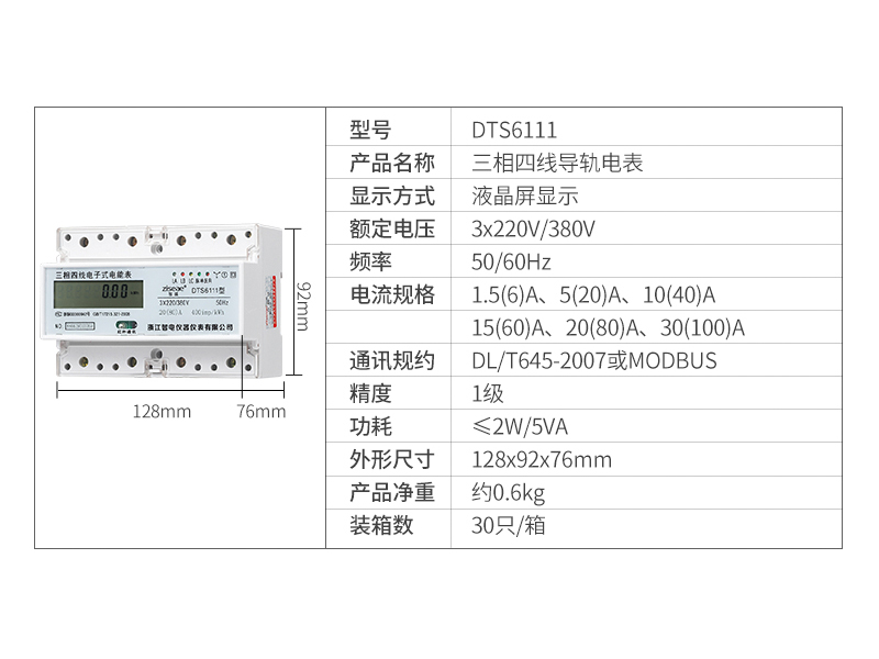 DTS6111、DSS6111型三相導軌式電能表7P(RS485通訊接口)